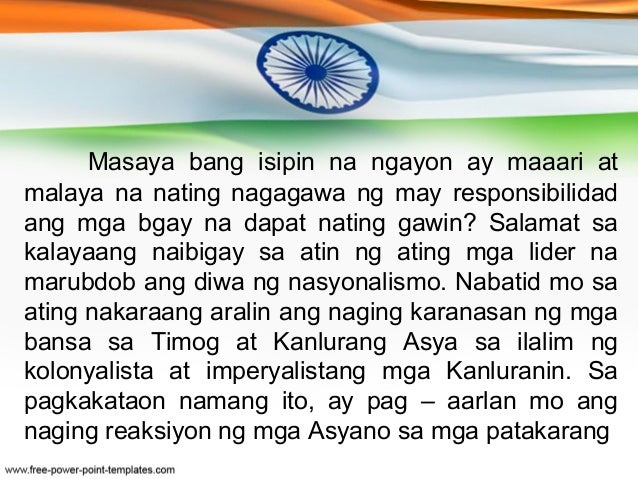 Nakasali ang pakistan sa mogul empire noong 1526 kung kailan sila ay namumuno sa india. Kalayaan kung kailan naging malaya sa mga dayuhan dahil sa mga bayaning lumaban, ito ang araw na nakawala ang ating bansa sa karahasan, ngunit kung ating titignan at papakiramdaman, talaga bang nakamit na natin ang kalayaan? Real independence day of the philippines